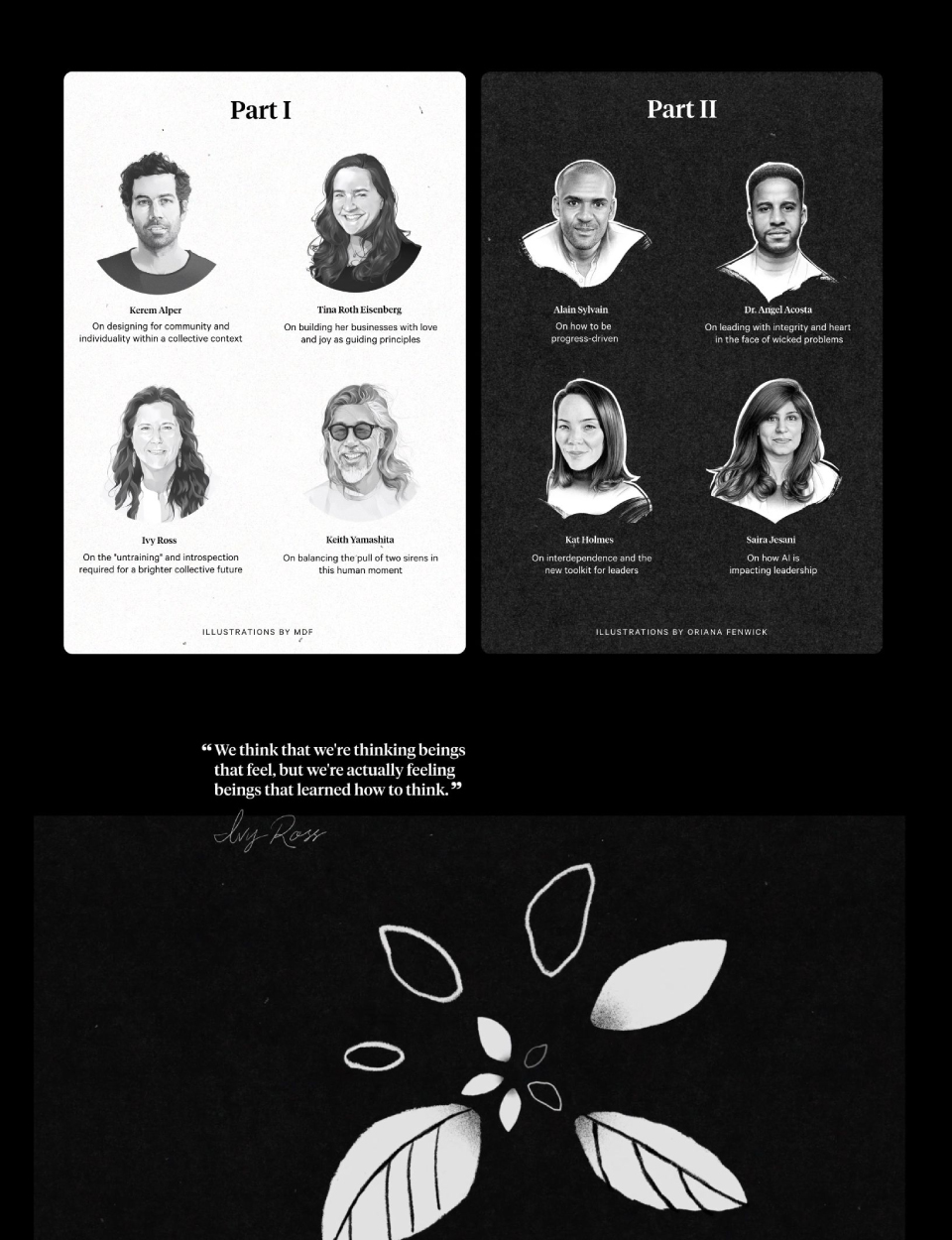 I created visuals that thoughtfully conveyed the profound insights into the role of leaders across various organizational fields. To emphasize the message's significance, I chose to utilize a restrained color palette and abstract nature-themed visuals.
